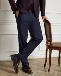 Parker Flat Front Stretch Wool Gabardine Trouser in Navy (Modern Straight Fit) by Zanella