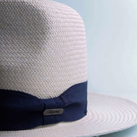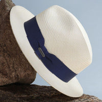 Classic 100% Paja toquilla straw fedora Panama hat with choice of grosgrain hatband color.