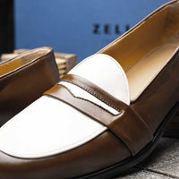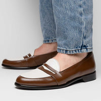 Alba Calfskin Penny Loafer in Camel/Cream by Zelli Italia