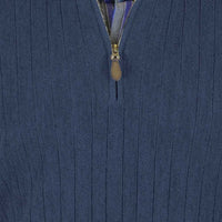 Baby Alpaca 'Links Stitch' Half-Zip Mock Neck Sweater in Denim Heather by Peru Unlimited