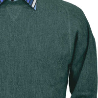 Luxuriously soft baby alpaca 'links stitch' crew neck sweater with sweatshirt-style vee insert at neck. The famous link stitch provides stretch and ease of movement - a perfect golf sweater!