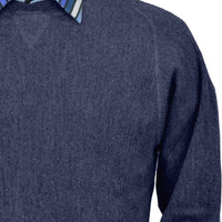 Baby Alpaca 'Links Stitch' Sweatshirt-Style Crew Neck Sweater in Denim Heather by Peru Unlimited