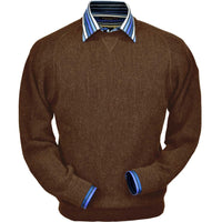 Luxuriously soft baby alpaca 'links stitch' crew neck sweater with sweatshirt-style vee insert at neck. The famous link stitch provides stretch and ease of movement - a perfect golf sweater!