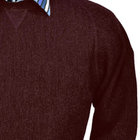 Baby Alpaca 'Links Stitch' Sweatshirt-Style Crew Neck Sweater in Wine Heather by Peru Unlimited