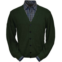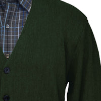 Baby Alpaca 'Links Stitch' V-Neck Cardigan Sweater in Olive Heather by Peru Unlimited