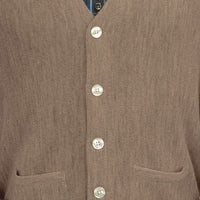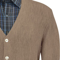 Baby Alpaca 'Links Stitch' V-Neck Cardigan Sweater in Taupe Heather by Peru Unlimited