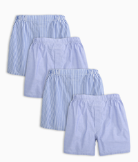 The 4-pack blue boxer shorts 100% premium cotton, delivers classic style and superior comfort in exact sizing.