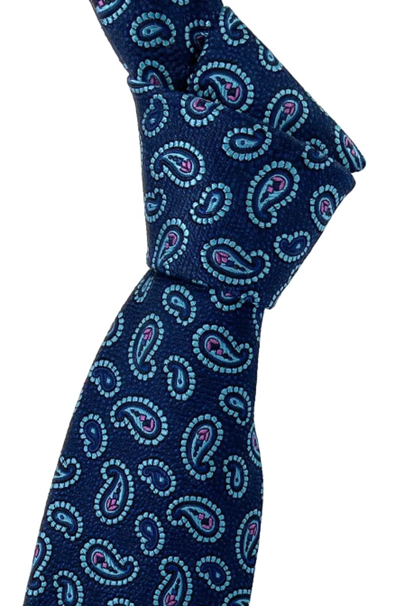 Best of Class navy, aqua and pink paisley woven silk tie.