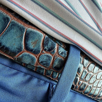 Bi-Color Crocodile Embossed Calfskin Belt in Navy and Red by Torino Leather