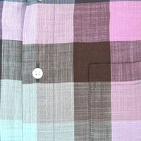 Lilac, Blue, and Aqua Plaid Linen and Cotton Short Sleeve Sport Shirt (Size Large) by Viyella
