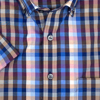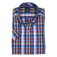 Blue Multi Plaid Short Sleeve No-Iron Cotton Sport Shirt with Button Down Collar by Leo Chevalier