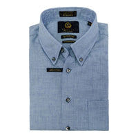 Solid Cotton and Wool Blend Button-Down Shirt in Chambray Blue by Viyella