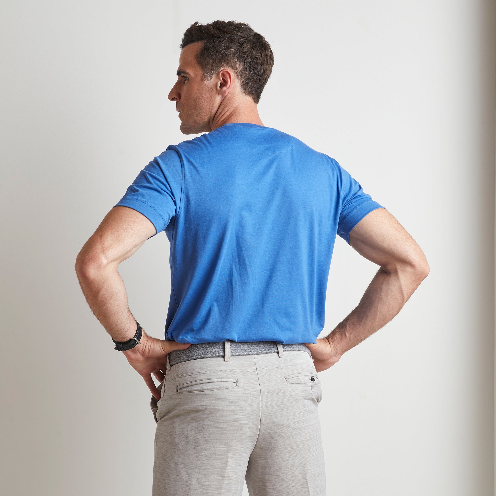 Classic, yet comfortable. Stylish and relaxed. Left Coast Tee's solid royal blue crew neck tee starts with the highest quality Pima cotton and ends with a soft, luxurious finish that dresses up or down with ease. This modern men's tee shirt is anything but basic—it defines adaptable, iconic Left Coast style.