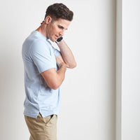 Classic, yet comfortable. Stylish and relaxed. Left Coast Tee's solid sky blue crew neck tee starts with the highest quality Pima cotton and ends with a soft, luxurious finish that dresses up or down with ease. This modern men's tee shirt is anything but basic—it defines adaptable, iconic Left Coast style.