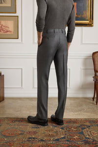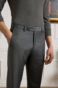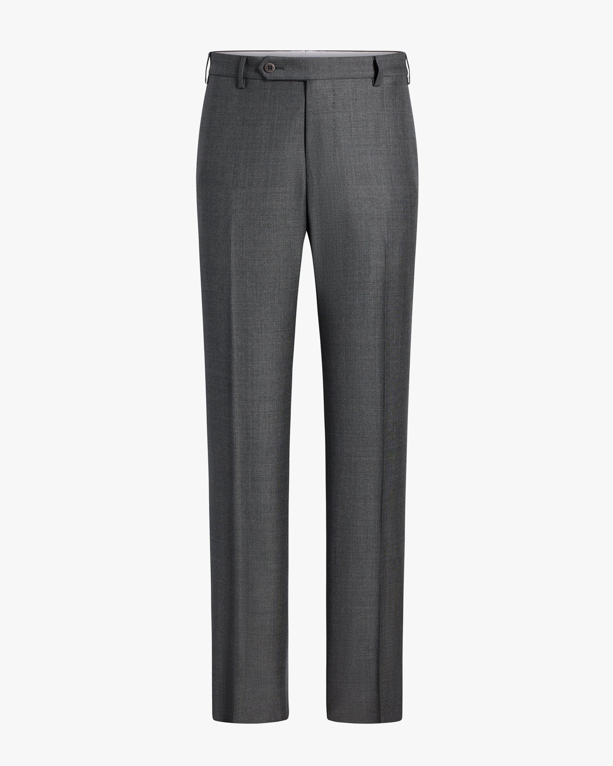 Devon Flat Front Sharkskin Wool Trouser in Medium Grey (Modern Full Fit) by Zanella