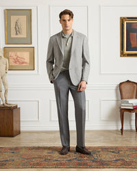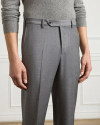 Devon Flat Front Super 110s Wool Serge Trouser in Light Grey (Modern Full Fit) by Zanella