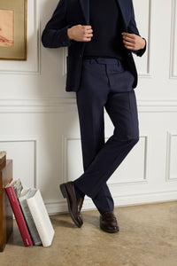 Devon Flat Front Super 110s Wool Serge Trouser in Midnight Blue (Modern Full Fit) by Zanella