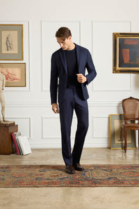 An updated full fit trouser designed for the transition from classic to contemporary. Constructed using a super 110s wool serge year-round comfortable wear. Our signature stretch waistband and medium rise provide paramount comfort for everyday movement. The Devon is the new essential for the classic man.