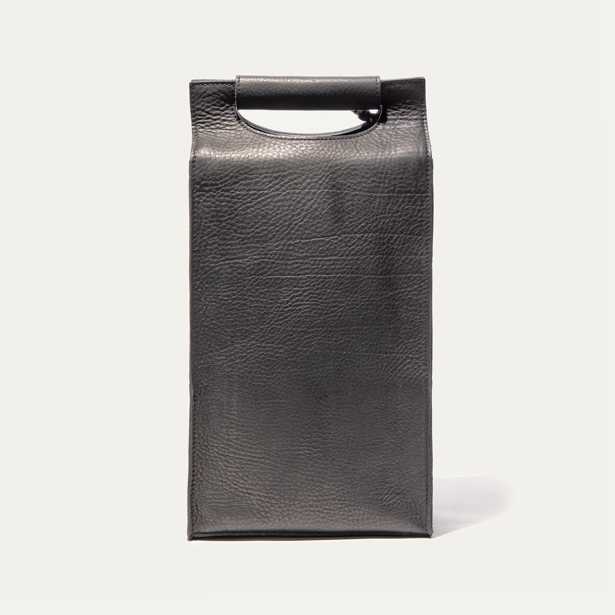 Double Leather Wine Bottle Case in Black by Will Leather Goods