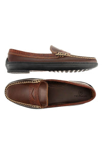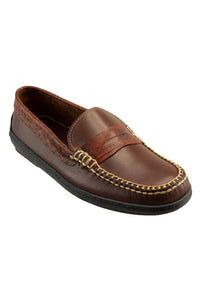 Traditions Key West Penny Driver in Briar Waxy Leather with Sport Rust Croco Embossed Trim by T.B. Phelps