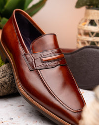 Meo Hand Burnished Italian Calfskin Loafer with Crocodile Trim in Cognac by Zelli Italia