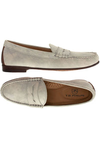 Preston Washed Calfskin Penny Loafer in Grey by T.B. Phelps