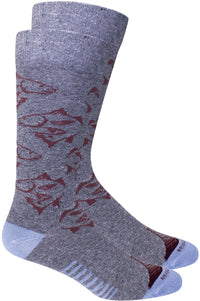 'Red Tail' Fish Pattern Cotton Socks in Light Grey Heather by Brown Dog Hosiery