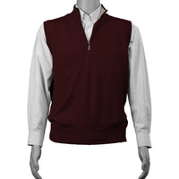 Royal Alpaca Half-Zip Mock Neck Sweater Vest in Wine Heather by Peru Unlimited