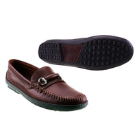 Easily personalize your shoe with T.B. Phelps' patented interchangeable Bridge Bits system! Classic driver in American oil tanned leather comes with nickel finished bar bit ornaments with additional Bridge Bits® styles available to add on. Handsewn upper with contrast stitching creates a refined look that has the ability to be either casual or formal. Traditions genuine rubber cupped outsole.