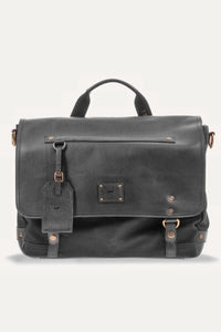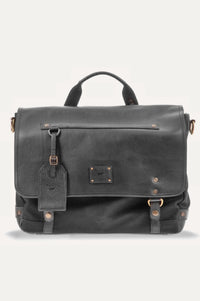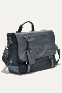Wallace Canvas and Leather Messenger Bag in Black with Black Leather by Will Leather Goods